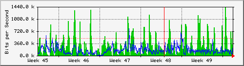| Max In: | 1431.9 kb/s (279.7%) | Average In: | 284.7 kb/s (55.6%) | Current In: | 714.7 kb/s (139.6%) | ||