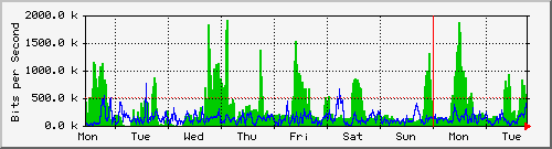 | Max In: | 1941.5 kb/s (379.2%) | Average In: | 478.9 kb/s (93.5%) | Current In: | 1035.1 kb/s (202.2%) | ||